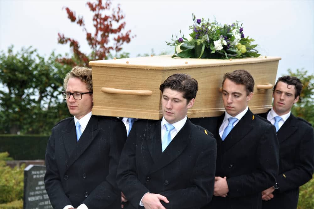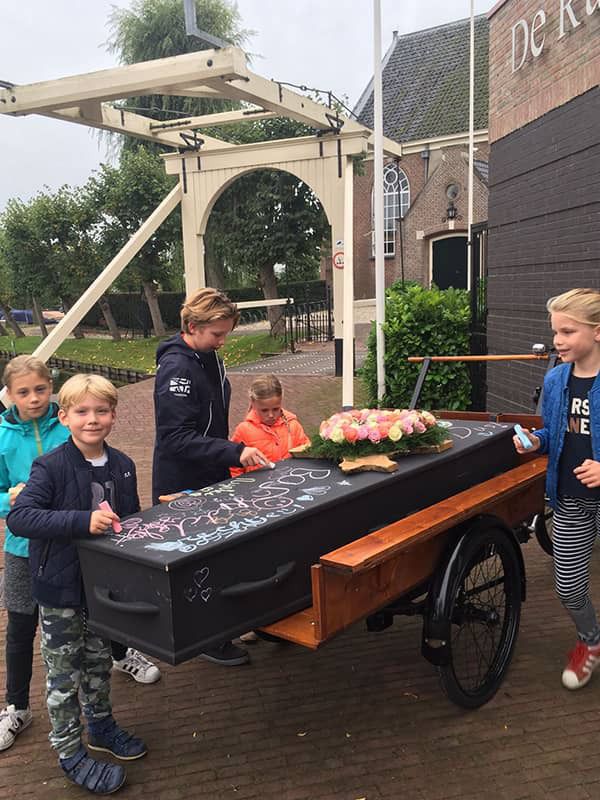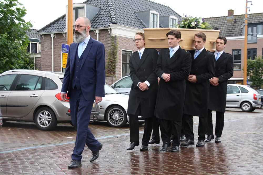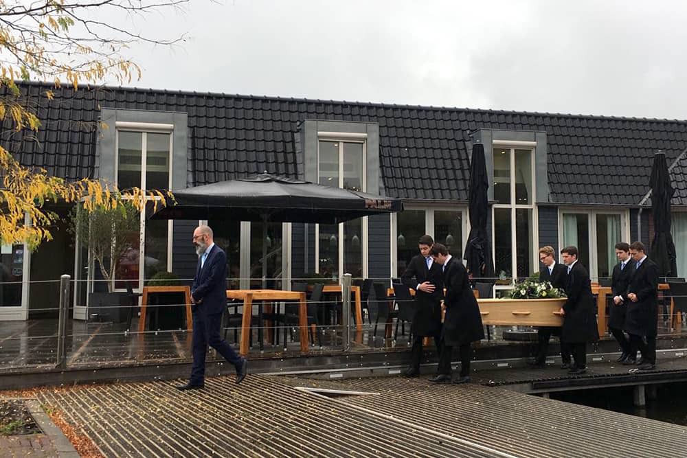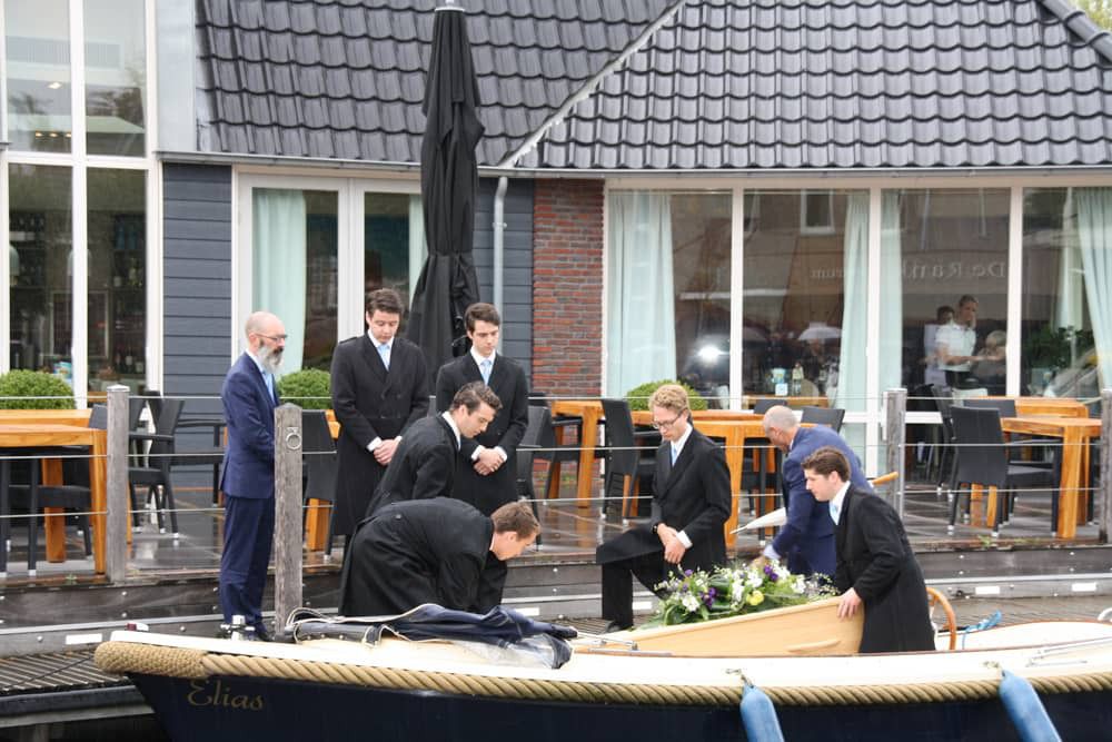 Daar kwam de sloep, met daarin de kist, twee dragers en ‘kapitein’ uitvaartverzorger Hans Könst